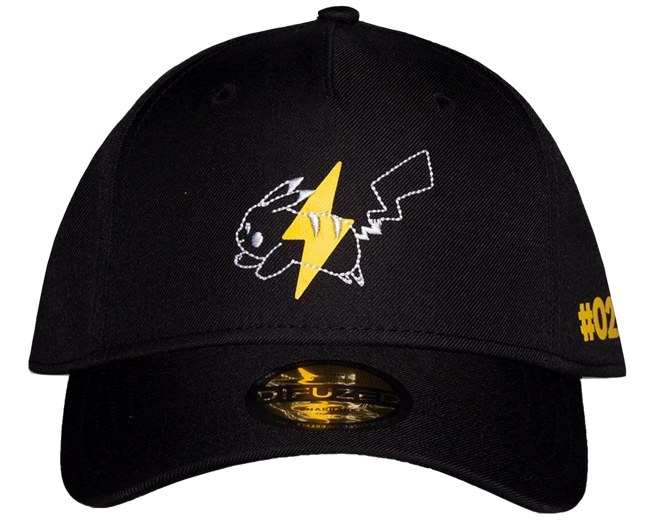 Černá baseballová čepice s motivem Pokémona Pikachu, z animovaného seriálu Pokémon. Na zadní straně kšiltovky je plastový řemínek, sloužící k nastavení velikosti.