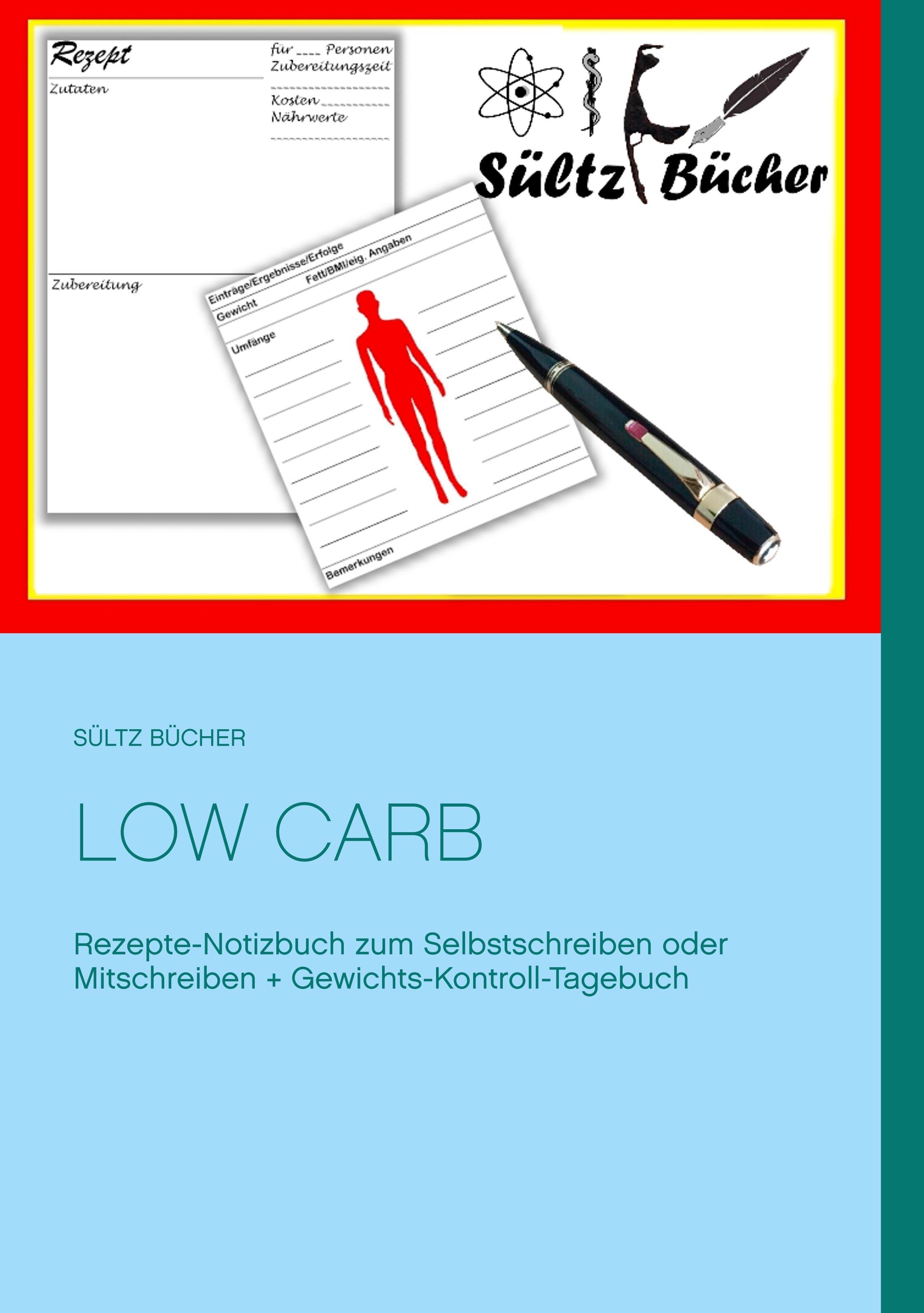 Low Carb  Rezepte-Notizbuch zum Selbstschreiben oder Mitschreiben + Gewichts-Kontroll-Tagebuch