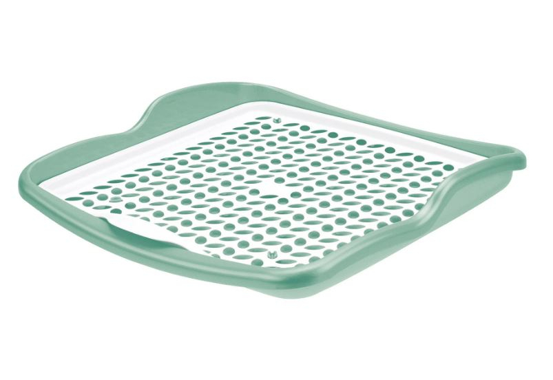odkapávací tác na příbory, misky a hrnce, který lze umístit na pracovní desku a vyměnit nebo prodloužit odkapávací desku. Zásobník díky zabudované protiskluzové podložce zjednodušuje organizaci mokrého nádobí tím, že minimalizuje nárazy a zabraňuje uklouznutí těžších předmětů po jiných.