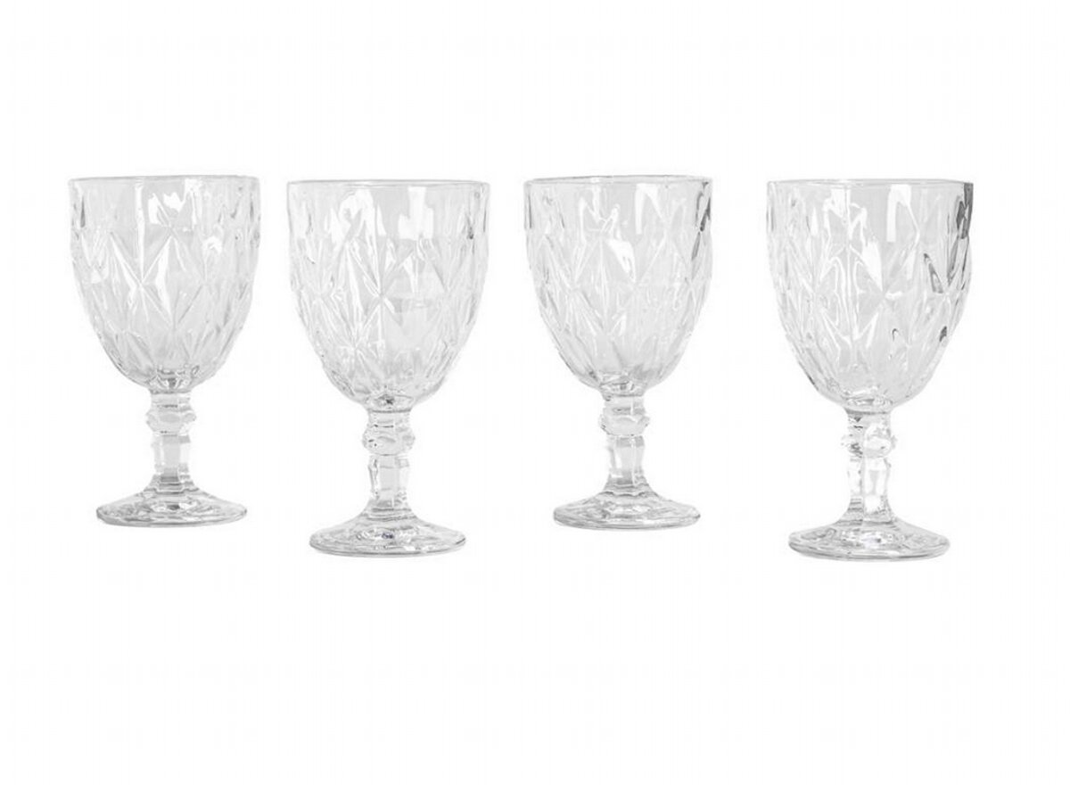 4 sklenice v ceně - Elegantní sklenice s reliéfním vzorem - Sada průhledných sklenic na víno LUNO, 4 ks.