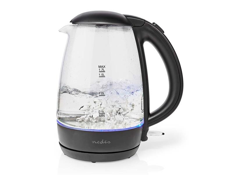 Tato skleněná konvice vypadá stylově nejen kvůli prosklenému tělu, díky němuž vidíte, zda se voda vaří, ale také díky modrému světlu LED, které se při zapnutí konvice rozsvítí. Konvice má kapacitu 1,7 litru a díky skrytému topnému tělesu s neuvěřitelným příkonem 2 200 W budete mít čaj hotový než řeknete švec. Díky 360° základně s uložením kabelu je konvice vhodná pro leváky i praváky. Konvice je odnímatelná, snadno se tedy plní a snadno se z ní i nalévá. Víko se hladce otevírá stisknutím tlačítka, nepřijdete tak do kontaktu s párou. Velký otvor a skryté topné těleso usnadňují čištění. Díky skleněné nádobě s indikátorem hladiny vody můžete zřetelně vidět, kolik je v konvici vody. Po dosažení varu se skleněná konvice automaticky vypne. Kromě toho má také ochranu proti vaření bez vody.Protiskluzové nožičky zajišťují stabilitu a bezpečnost konvice. Kabel lze omotat kolem základny, abyste si konvici snadno mohli umístit do kuchyně.