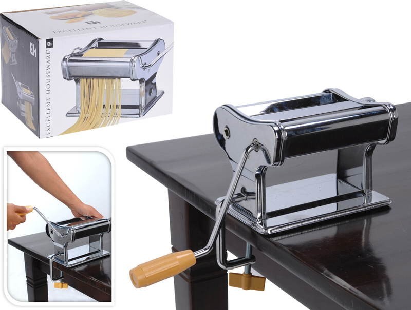 Strojek je vyroben z pečlivě zvolených materiálů - nerezová ocel zaručuje dlouhou životnost a odolnost, zatímco chromované válečky s prémiovou povrchovou úpravou umožňují perfektní zpracování těsta. Díky praktickému nastavitelnému svěráku jej snadno a pevně připevníte ke kuchyňské lince nebo stolu, což vám přinese maximální stabilitu při práci. Využijete ho pro přípravu těsta o šířce až 14,5 cm a zvolit můžete z 9 nastavení tloušťky od 0 do 3 mm.