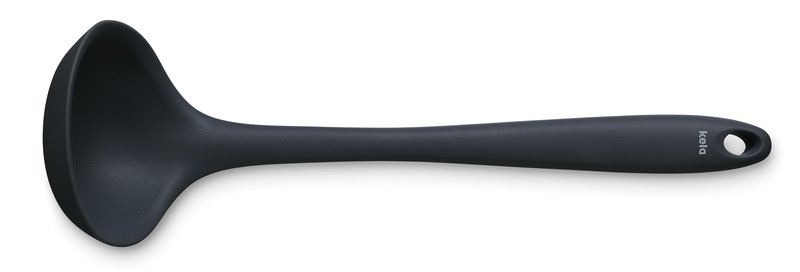 Naběračka Tom by kela - 28,5 cm dlouhá a proto ideální pro pohodlné a bezpečné nabírání polévek, dušeného masa nebo omáček. Kvalitní kuchyňský pomocník je vybaven šikovnou, oválnou rukojetí a praktickým poutkem na zavěšení, takže jej lze po použití buď zavěsit, nebo uklidit do šuplíku. Vyrobeno z černého silikonu!Černý silikon, 28,5x8,5cm