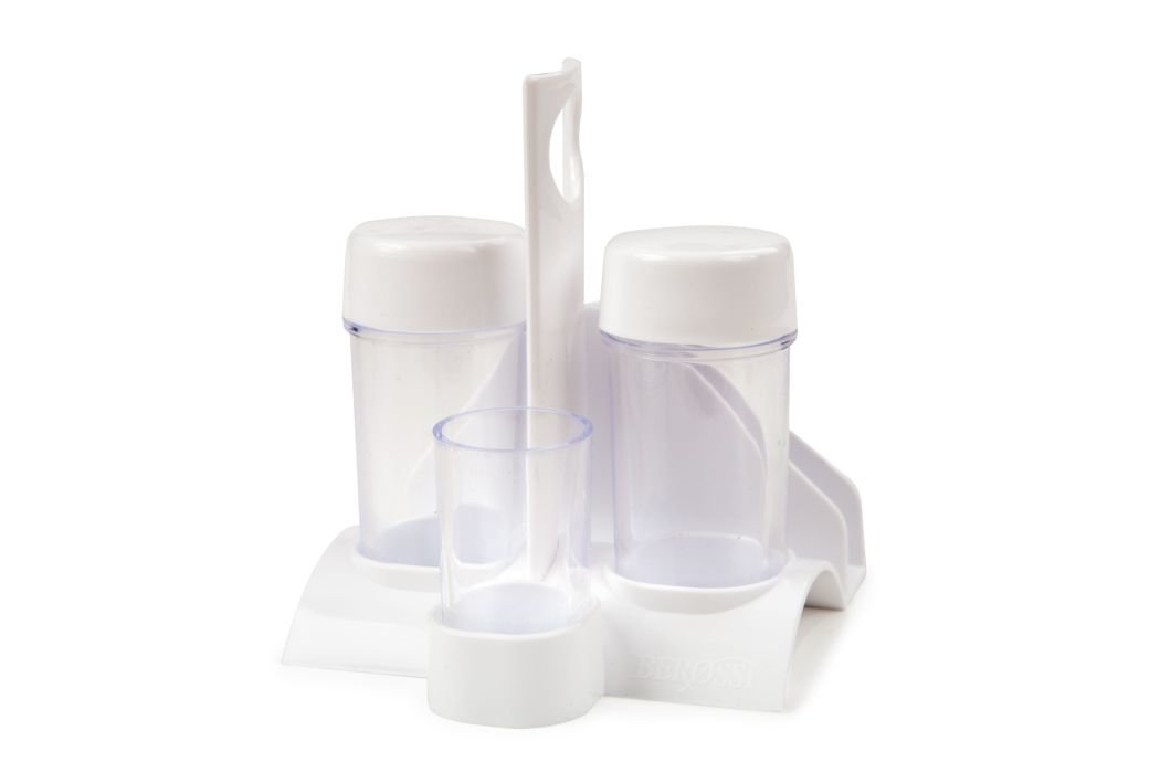 slánka+pepř. 3-dílná RONDO bílá, stojánek 10,3x10,3x11,7cm