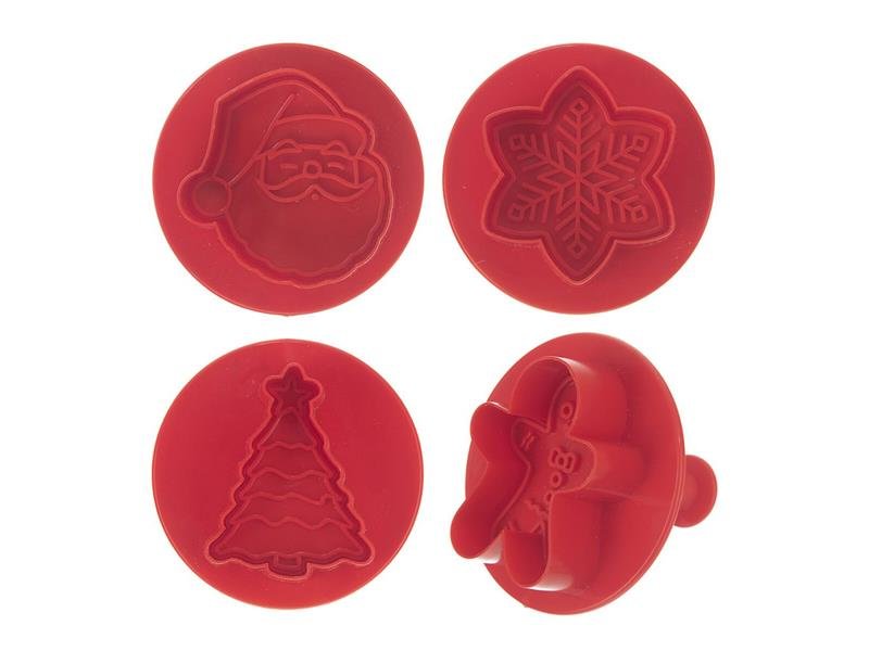 Vykrajovačka s pístem skvěle vytvoří domácí perníčky nebo sušenky. Nejdříve vykrojíte klasicky obrys, pomocí pístu pak obtisknete plastický vzor. Sada 4 vánočních tvarů - stromeček, vločka, Santa, Perníček. Vhodné nejen na sušenky a perníčky, ale také na marcipánové ozdoby nebo modelovací hmotu. Technické parametry: