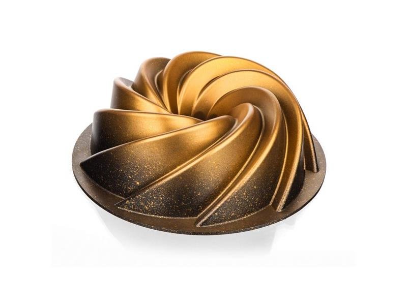 Litá hliníková pečící forma na bábovku o průměru 26 cm s nepřilnavým povrchem pro pečení třených, kynutých a piškotých těst. Je vhodná pro elektrické, plynové i horkovzdzušné trouby.