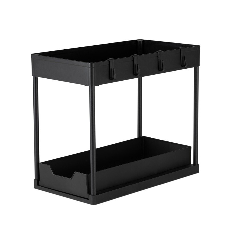 Kuchyňský organizér dvoupatrový v elegantní černé barvě představuje praktické řešení pro všechny, kdo chtějí mít své kuchyňské potřeby vždy po ruce a přehledně uložené. Díky dvěma patrům získáte dostatek místa pro uspořádání nádobí, koření či drobných kuchyňských doplňků.