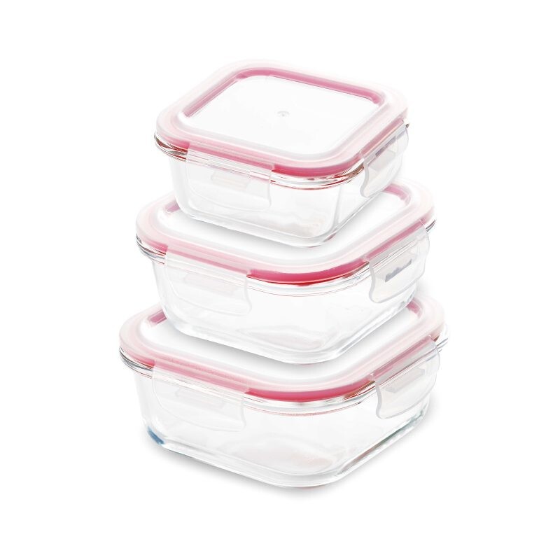 Dóza na potraviny skleněná se zaklapovacím víkem sada 3 ks čtvercová