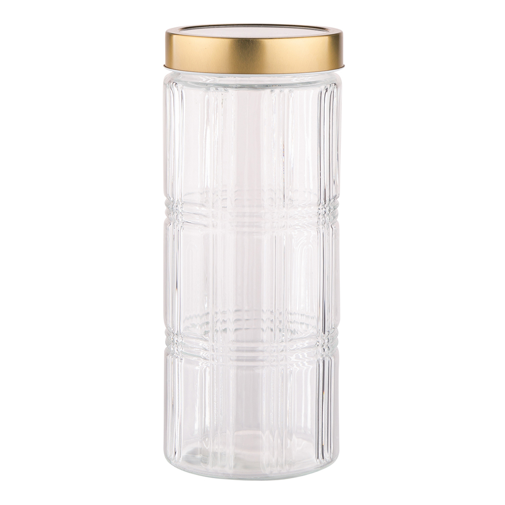 SKLENĚNÁ NÁDOBA S POKLÍČKOU ZLATÉ BARVY 2.2 L S DEKORACÍ MŘÍŽKA