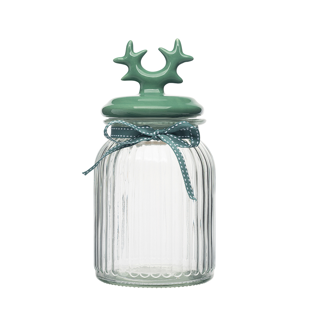 KONTEJNER RELIEF S KERAMICKÝM VÍČKEM ZELENÉ ROHY 900ML
