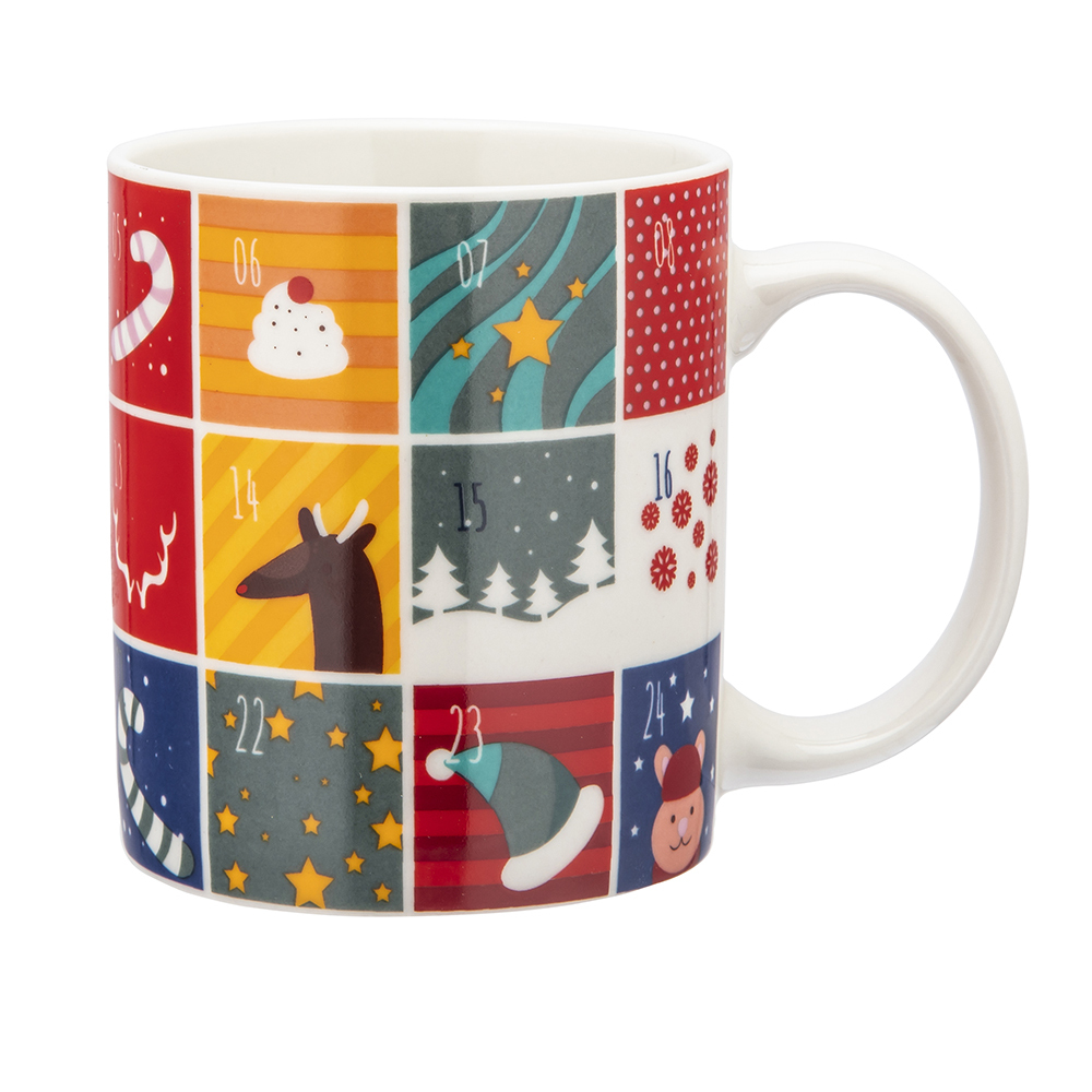 PROSTÝ PORCELANOVÝ HRNEK NBC 330ML DEKOR ADVENTNÍHO KALENDÁŘE A COLOR BOX