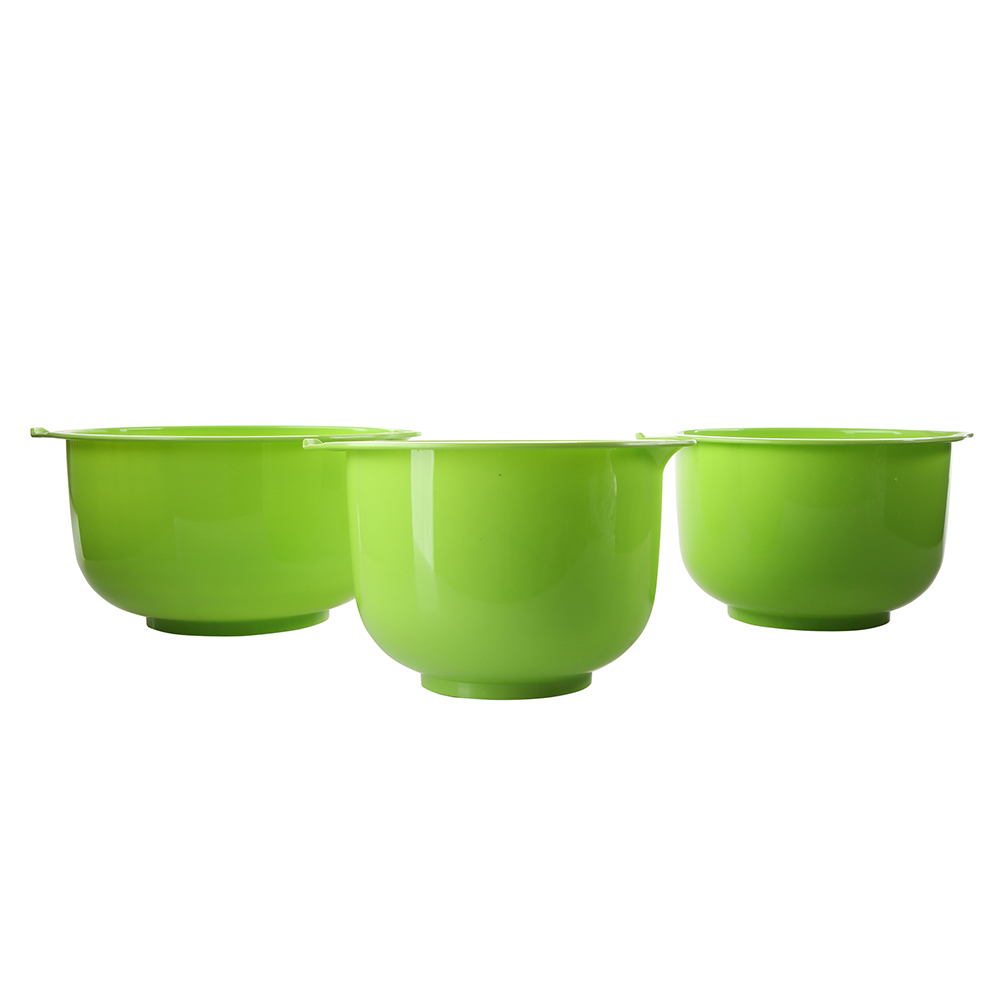 Okrągłe miski. Komplet 3 zielonych misek o wymiarach- średnice: 23/19/17 cm ipojemnościach: 3/2/1,5 L. Wykonane z wysokiej jakości tworzywa. Idealne do mieszania, miksowania i innych prac kuchennych. Są łatwe w utrzymaniu czystości. Mogą być myte w zmywarce. číst celé
