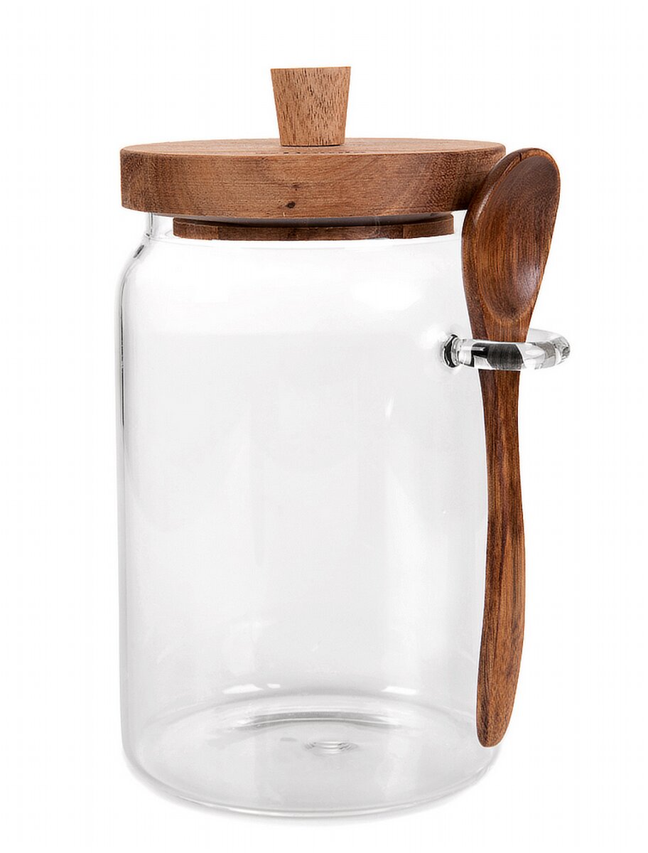 - Elegantní design z kvalitního skla kombinovaný s akátovou lžičkou.