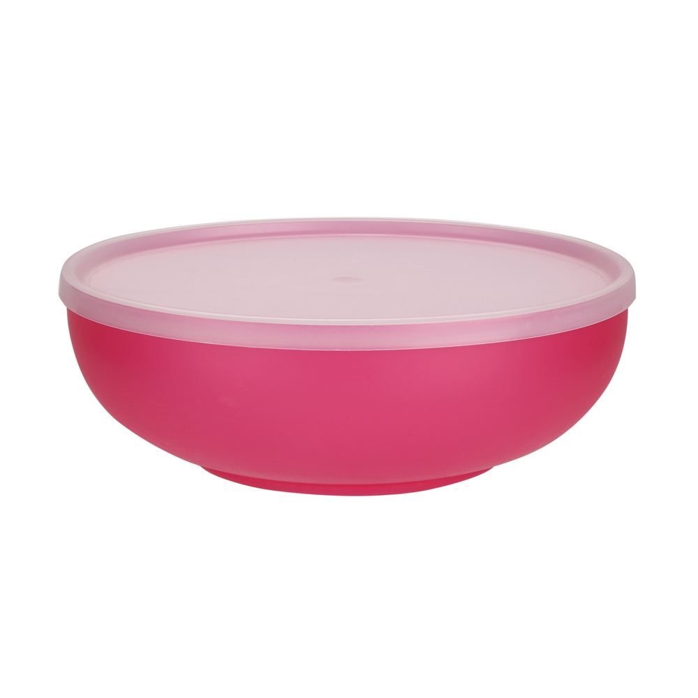 Miseczka z pokrywką. Duża, czerwona miseczka z pokrywką o poj. 1,85 l i średnicy 22 cm. Pojemna miska z praktyczną pokrywką, która chroni przed wylaniem się jej zawartości i zanieczyszczeniem jej np.: przez owady. Wykonana z trwałego tworzywa. Łatwa w utrzymaniu czystości. Można ją myć w zmywarce i używać w mikrofalówce oraz w zamrażarce.