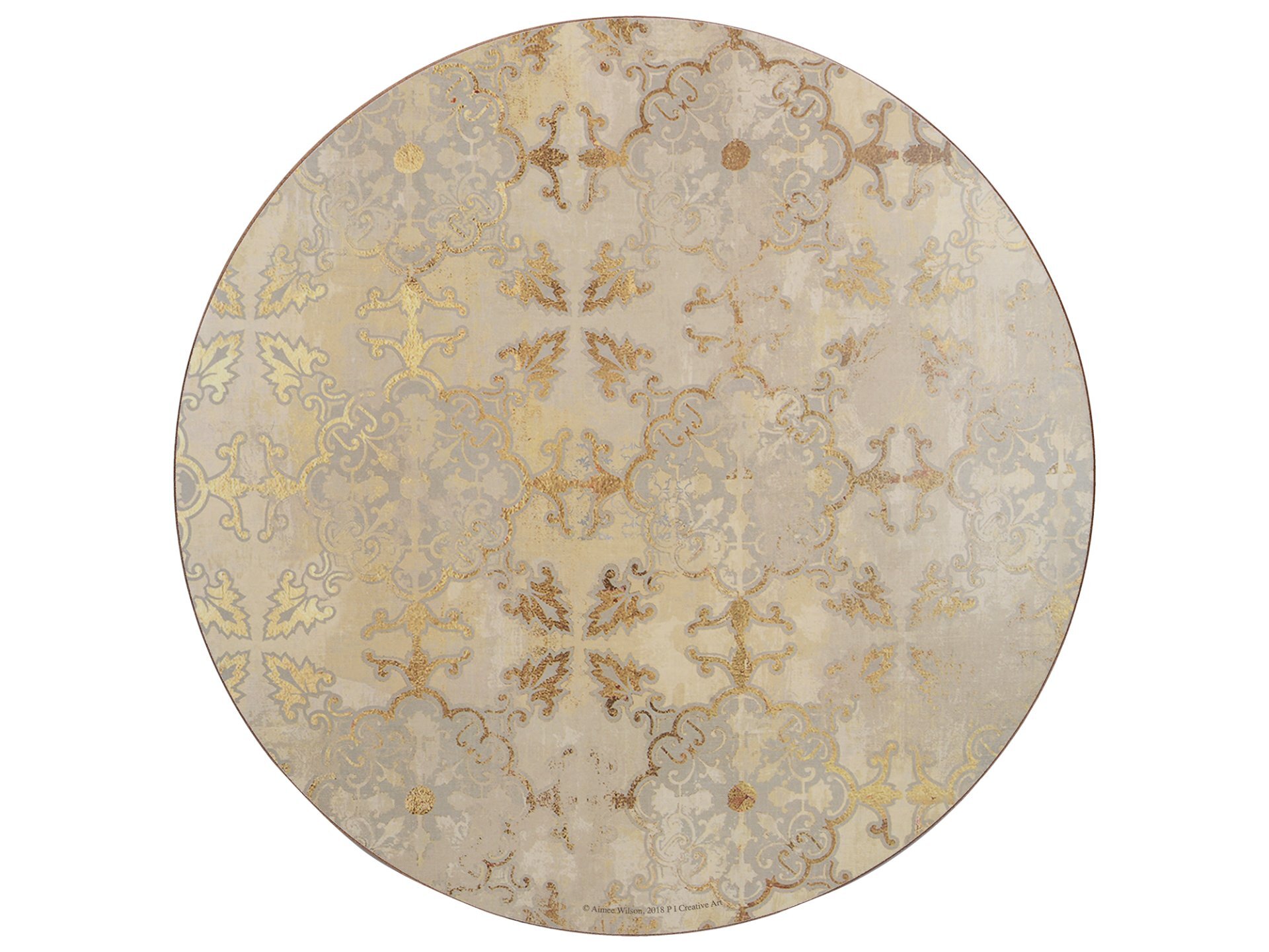 Dodržujte styl i ochranu vašeho stolu s exkluzivním kulatým korkovým prostíráním Gold Impressions! Užijte si pohodlí a praktičnost v jednom elegantním designu, který ozvláštní každý jídelní stůl.