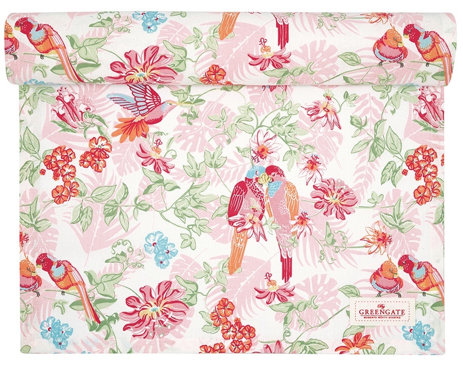 Bavlněný běhoun na stůl Fallulah White s květinami podkladu z kolekce Fallulah White dánské značky GreenGate. číst celé