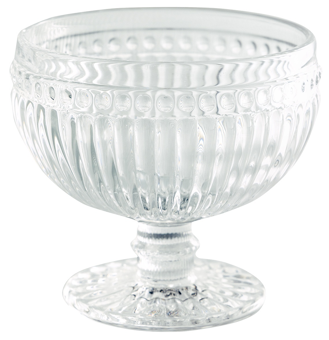 Zdobená skleněná miska na nožce Alice Clear je součástí kolekce Alice dánské značky GreenGate