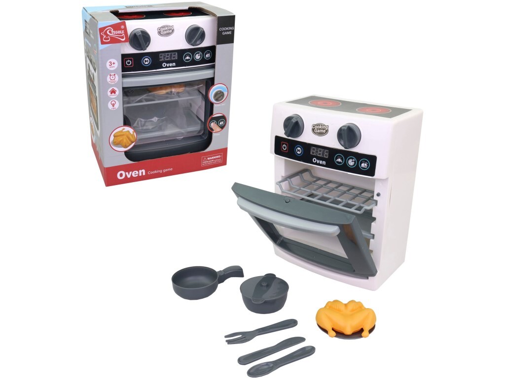 Tento set trouby se sporákem je ideální pro všechny malé kuchaře a kuchařky od 3 let. Díky přiloženým hrncům, talířům a příborům mohou děti napodobovat skutečné vaření a představovat si přípravu pokrmů pro celou rodinu. Trouba funguje na 3 baterie AA (nejsou součástí balení) a je vybavena světlem a zvukovými efekty, které umocňují autentičnost hry a podněcují dětskou fantazii.