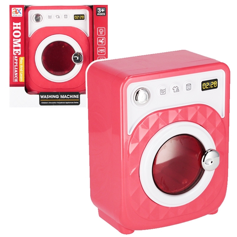Růžová pračka, má rozměr 20X20X10 cm. Cena je za 1 kus. Vyžaduje 2 x AA LR06 baterie - nejsou součástí balení. Vhodné pro děti 3+.