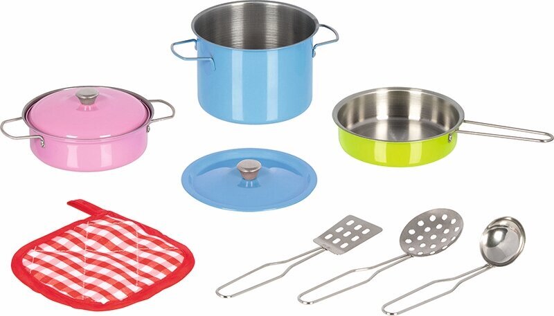 9-częściowy zestaw kuchenny marki Goki zachwyci każdego miłośnika gotowania. Może posłużyć do zabawy w dom, kuchnię, restaurację czy sklep. Garnki, chochla i łyżki są metalowe. Odgrywanie roli osoby dorosłej to olbrzymia frajda dla małego kucharza. Podczas zabawy w gotowanie dziecko rozwija umiejętności z zakresu małej i dużej motoryki, a przyjmowanie i wydawanie zamówień wspomaga umiejętności społeczne. Ten zestaw do zabawy w gotowanie to doskonały pomysł na prezent dla dziewczynki i chłopca.