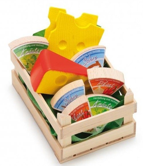 Z drewnianym serem, mała Pani domu przygotuje przepyszne kanapki dla swoich lalek i misiów. Może wykorzystać je także bawiąc się w sklep. Wystarczy położyć skrzyneczkę na sklepowej półce, aby ujrzeć jak szybko się sprzedaje.