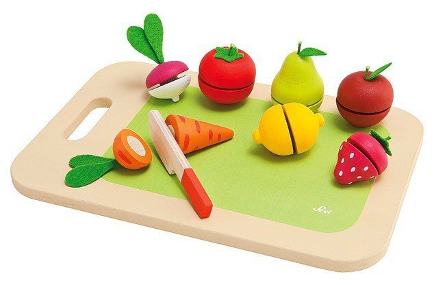 Drewniana deska do krojenia z owocami i warzywami, 9 el.