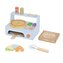 Pizza set obsahuje všetko, čo dieťa potrebuje na prevádzkovanie vlastnej pizzerie: pec, pizzové cesto, prísady, soľ, korenie, dosku do pece, krabicu na pizzu... Všetko je vyrobené z kvalitného dreva a netoxických farieb.