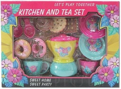 Zestaw Kuchenny i Herbaciany "Sweet Home Sweet Party" - Let\'s Play Together! Odkryj magiczny świat zabawy z naszym uroczym zestawem kuchennym i herbacianym "Sweet Home Sweet Party"! Ten barwny i pełen detali komplet został stworzony z myślą o małych miłośnikach gotowania i popołudniowych przyjęć. Dzięki niemu każde dziecko może wcielić się w rolę gospodarza lub kucharki, rozwijając swoją wyobraźnię i umiejętności społeczne poprzez interaktywną zabawę. W skład zestawu wchodzą: Uroczy czajniczek w pastelowych kolorach, idealny do nalewania "herbatki". Dwie filiżanki z dopasowanymi spodeczkami, w sam raz na herbatę dla dwojga. Dwa talerzyki na pyszne "smakołyki". Słodkie przysmaki: dwa apetycznie wyglądające pączki i dwa ciasteczka, które umilą każde przyjęcie. Dwie łyżeczki, niezbędne do mieszania i "degustacji". Zestaw "Sweet Home Sweet Party" nie tylko zapewnia godziny kreatywnej zabawy, ale także pomaga w rozwijaniu koordynacji wzrokowo-ruchowej i umiejętności dzielenia się. Wykonany z bezpiecznych i trwałych materiałów, jest idealnym prezentem dla dzieci w wieku przedszkolnym i wczesnoszkolnym. Podaruj swojemu dziecku możliwość organizacji niezapomnianych przyjęć herbacianych i wspaniałej zabawy w kuchni z zestawem "Sweet Home Sweet Party"! "Let\'s play together!" nabiera nowego znaczenia z tym fantastycznym kompletem.