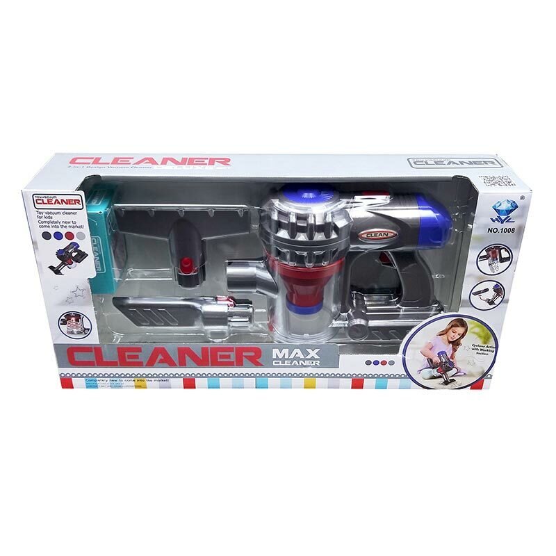 Szary, ręczny odkurzacz na baterie Max Cleaner. Jest niezwykle lekki i łatwy w złożeniu (możemy zastosować różne końcówki). Dzięki temu poradzi sobie z nim nawet małe dziecko. Produkt ma funkcję prawdziwego odkurzania - wciągnie do środka małe drobinki, które dodano do zestawu. Odkurzacz został wyposażony w specjalny pojemnik na śmieci, który możemy opróżnić. Dodatkowe wytłoczenia na powierzchni zabawki dodają jej realizmu. Produkt jest świetnym gadżetem, który będzie stanowił wprowadzenie dzieci w przyszłe, domowe obowiązki.Baterie: 3xAA (brak w zestawie)Wymiary opakowania: 43,5x10x21,5cmWiek: 3+