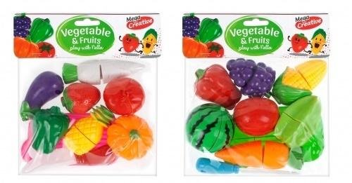 Dzięki Zestawowi do krojenia MEGA CREATIVE, Twoja pociecha pozna różne rodzaje Owoców i Warzyw. Wspólna zabawa na pewno zaowocuje wspaniałymi chwilami podczas wspólnego gotowania smakołyków w kuchni! W zestawie zajdują się: deska do krojenia, nóż oraz 7 różnych owoców i warzyw - różniących się w zależności od zestawu. Wszystkie Owoce oraz Warzywa podzielone są na dwie części, połączone ze sobą za pomocą rzepów, co imituje proces ich krojenia. Produkty wykonane z plastiku.