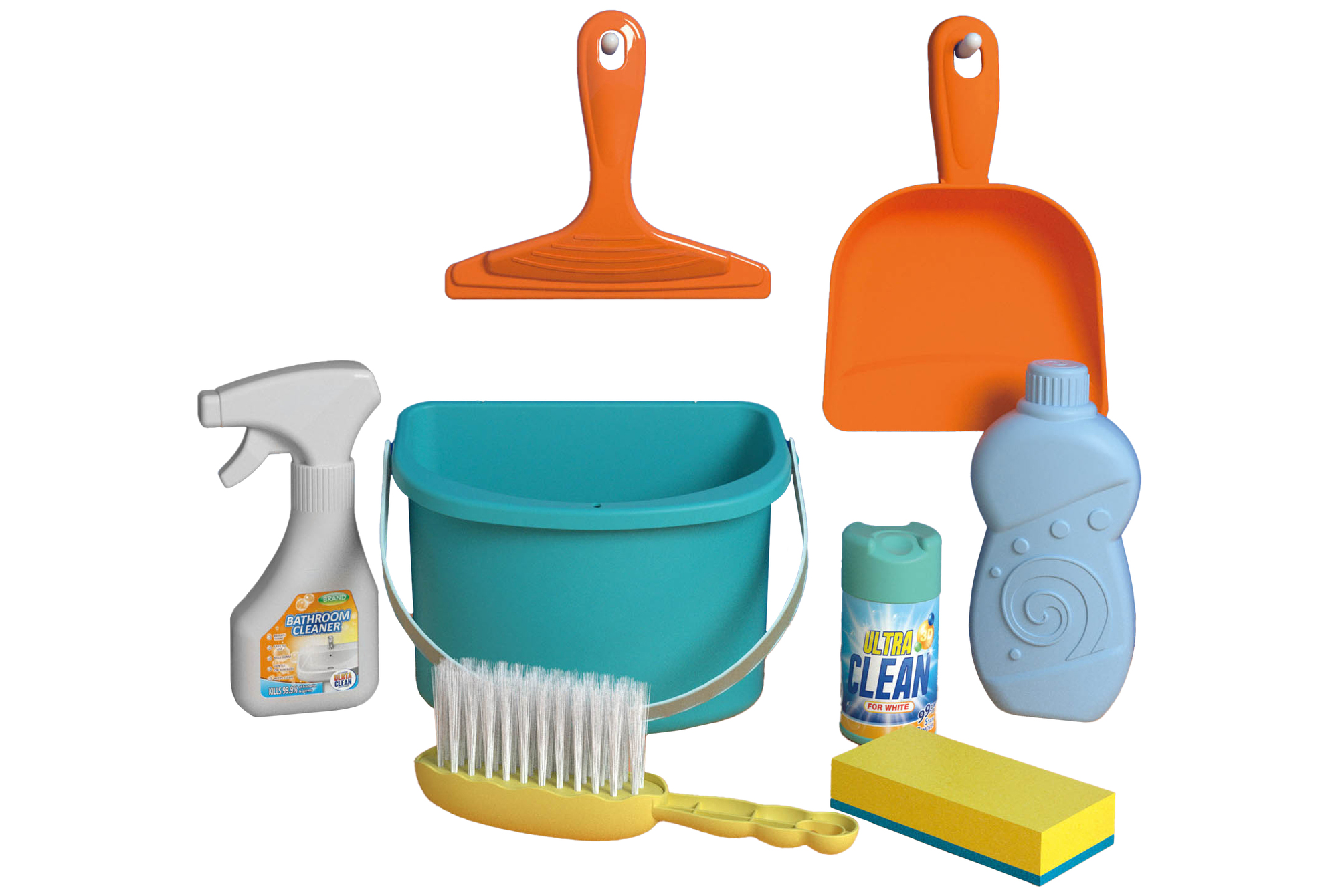 Úklidový set 8ks. Obsahuje kbelík, lopatku, stěrku, čisticí prostředky, smetáček. číst celé