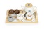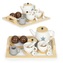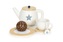 Dřevěná čajová sada s konvicí a šálky, 17 dílů; béžová, bílá; dřevo