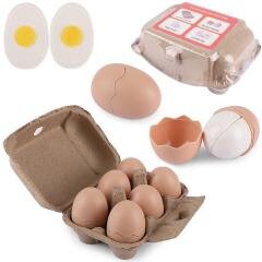 Realistyczne Opakowanie: Jajka są zapakowane w kartonową wytłaczankę na 6 sztuk, co naśladuje prawdziwe produkty i uczy dzieci, jak wygląda i działa opakowanie spożywcze.