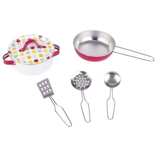 komplet wykonany z metaluzestaw składa się z: patelni, garnka z pokrywką, chochelki, łopatki i łyżkiśrednica naczyń: 10 cm číst celé