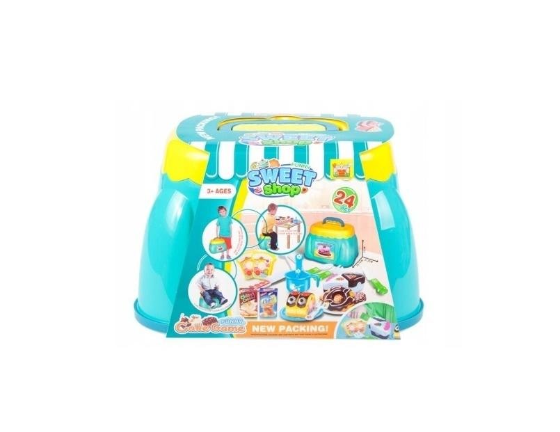 Zestaw oprócz typowych akcesoriów, sztućców i produktów do jedzenia posiada także walizkę, która nie tylko spełnia funkcję przechowywania czy przenoszenia ale także... siedzenia.Walizka świetnie sprawdzi się jako krzesełko podczas zabawy.Całość składa się z 24 elementów
