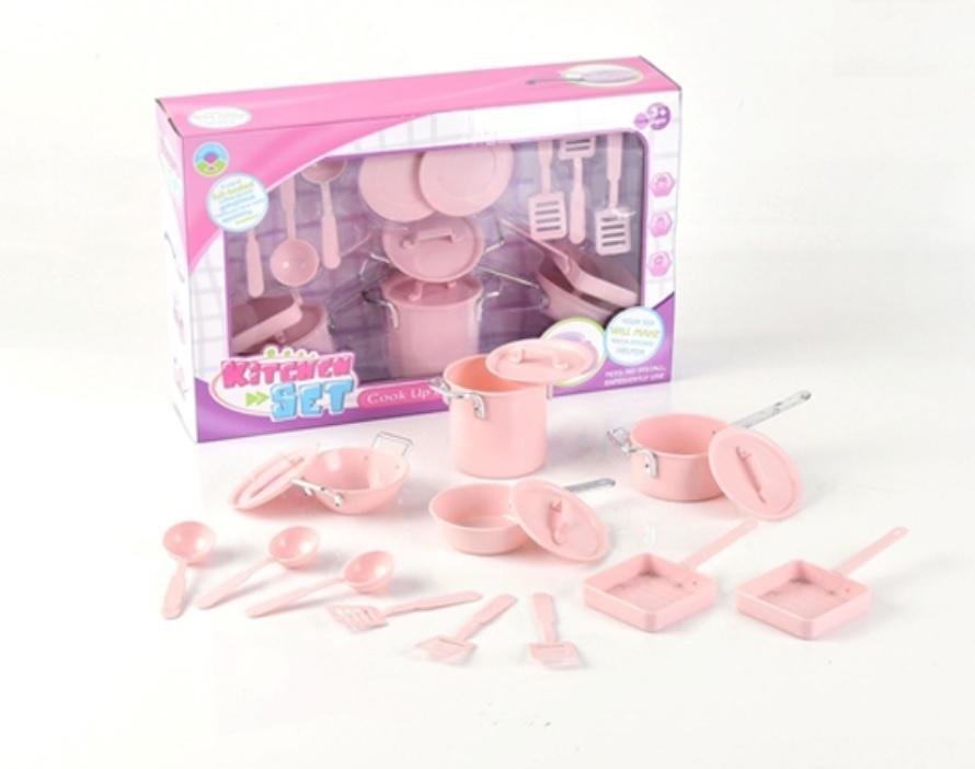 Wieloelementowy zestaw kuchenny, który zawiera garnki, patelnie, sztućce oraz wiele innych, číst celé