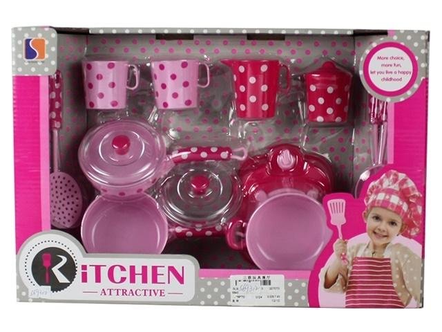 Zestaw naczyń kuchennych w różowym kolorze. číst celé