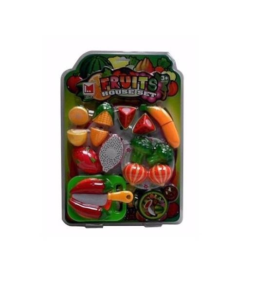 Zestaw owoców i warzyw do krojenia na rzep.Super zestaw warzyw do krojenia z nożem talerzykiem.Składa się z:8 warzyw / owoców plastikowych z rzepaminoża,deski do krojeniadużego talerza.Przykładowe wymiary owoców:Banan: 12,4cmKukurydza: 8,7cmCytryna średnica: 4cm