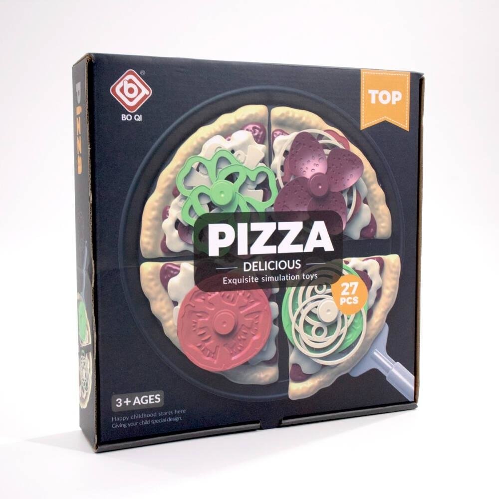 Pizza w kartoniku 22,5 cm - układanka. Produkt nie potrzebuje baterii. Zabawka przeznaczona dla dzieci powyżej 3 roku życia.