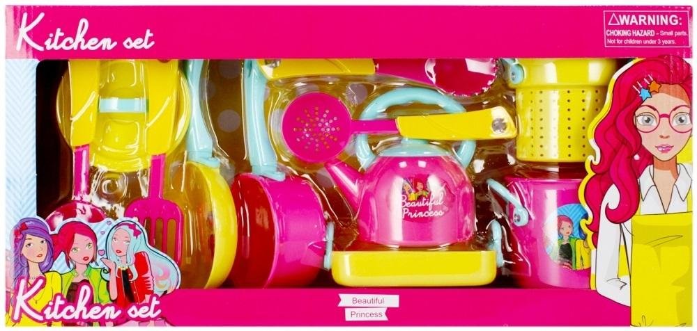 Zalety produktu: dziecko może nauczyć się podstawowych czynności domowych jakim jest np. gotowanie, zestaw z naczyniami kuchennymi z kolorową grafiką. Naczynia kuchenne MEGA CREATIVE doskonale sprawdzą się podczas zabawy w domu w gotowanie. Kuchnie dla dzieci z takim wyposażeniem mogą sprawić, że zabawa w gotowanie może stać się pasją dziecka! Zawartość zestawu: garnek, garnek do gotowania makaronu, brytfanka, czajnik, patelnia, rondelek, przykrywka, chochla, chochla szumówka, łyżka do makaronu oraz łopatka do mięsa. Całość wykonana z plastiku. Wymiary/waga/baterie: wymiary produktu (wys. x szer.)[cm]: garnek-8x12, brytfanka-2x12, czajnik-11x11, wymiary opakowania (dł. x wys.x gł.) [cm]: 46x22x10, waga produktu bez opakowania [kg]: 0,24 kg, waga produktu w opakowaniu [kg]: 0,48 kg, nie wymaga zasilania bateriami. Zabawka przeznaczona dla dzieci w wieku: 3+. Pakowana w kartonik z okienkiem.