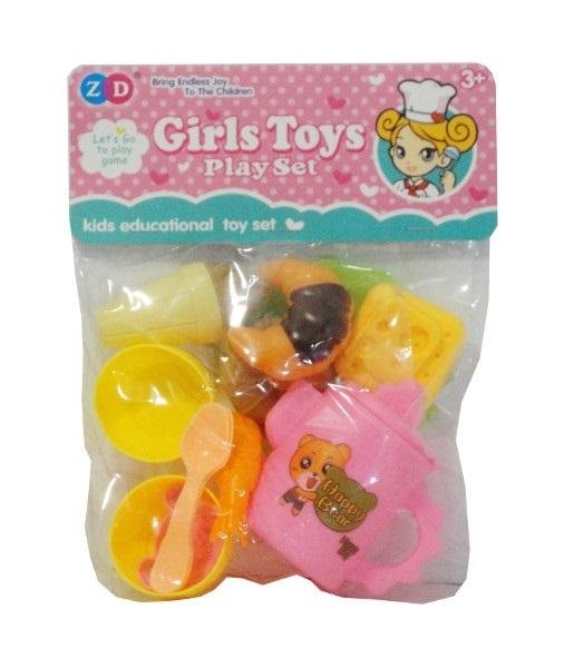 Zestaw naczyń kuchennych: dzbanek, 2 kubeczki i 2 talerzyki a także produkty spożywcze jak: rogalik, ciasteczka, lód. Produkt zapakowany w przezroczysty worek. Zabawka dla dzieci od 3 lat. číst celé