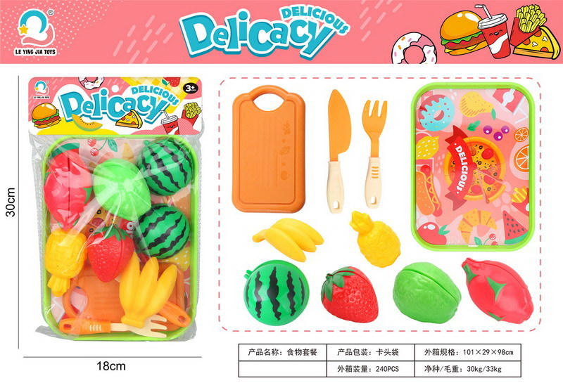 Potraviny ke krájení. Rozměry tácu 22x16 cm. Součástí potraviny, nůž, vidlička, krájecí prkénko, tác. číst celé