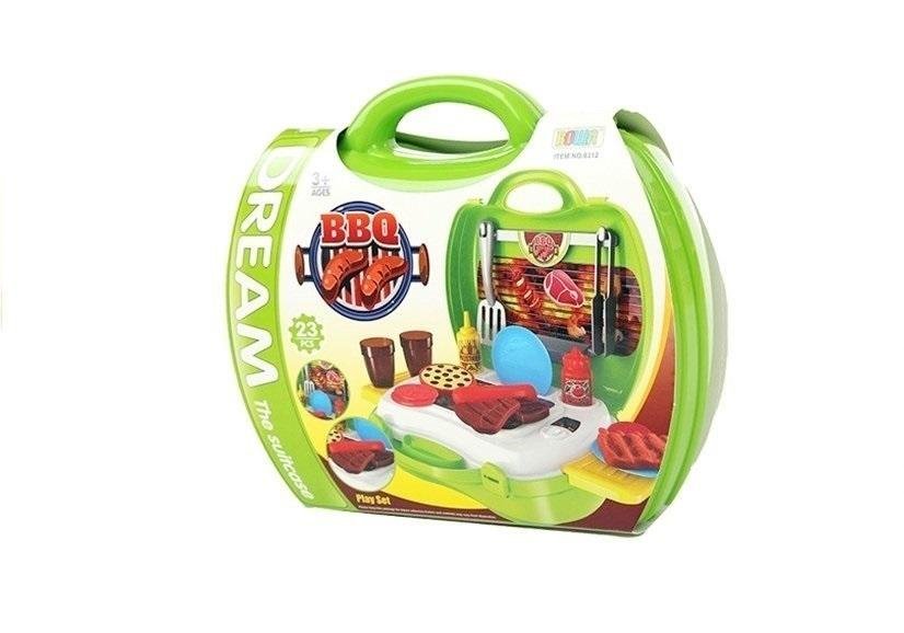 Wspaniały zestaw o zabawy w grillowanie. Świetna zabawa dla wszystkich dzieci. Można rozpocząć grillowanie w ogrodzie, bądź w pomieszczeniach. Teraz każde dziecko może rozłożyć swojego grilla w dowolnym miejscu i serwować przygotowane na nim potrawy.