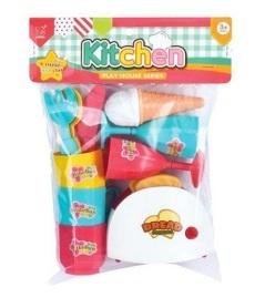 Zestaw plastikowych naczyń kuchennych. W skład zestawu wchodzi m.in: toster z grzankami, 3 kubeczki, 2 kieliszki, sztućce oraz lód. Produkt zapakowany w przezroczysty worek. Produkt dla dzieci od 3 lat. Podane wymiary są wymiarami produktu w opakowaniu. . číst celé