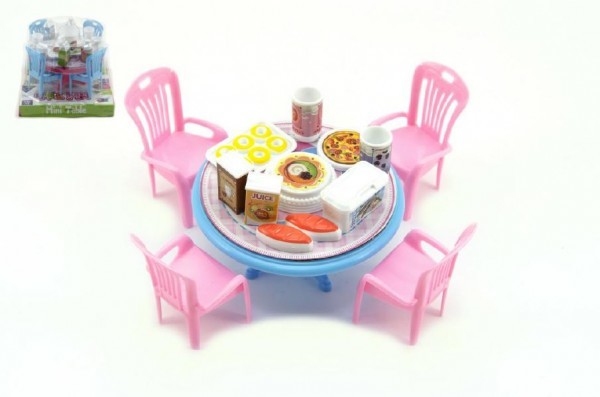 Nábytek pro panenky/stůl a židle s doplňky plast 12cm 3 barvy v blistru
