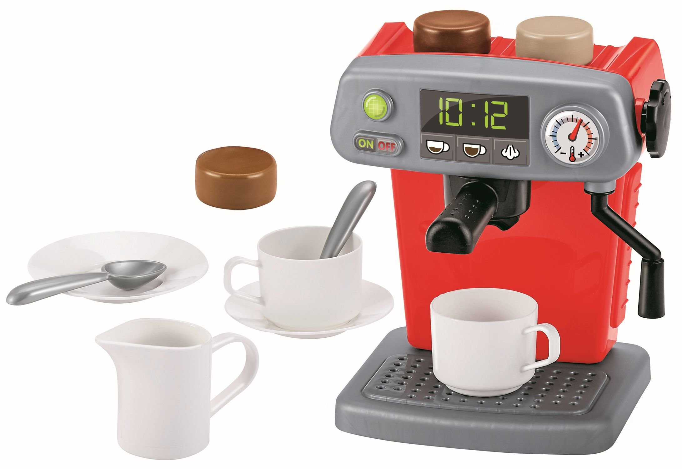 Dobře vybavený nejmodernější kávovar s odnímatelným držákem filtru a parní tryskou. Součástí balení jsou 3 makety mleté kávy, dvě sady nádobí se šálkem, talířkem, lžičkou a nádoba na mléko. Rozměry (DxŠxV): 15 x 13 x 17,5 cm.