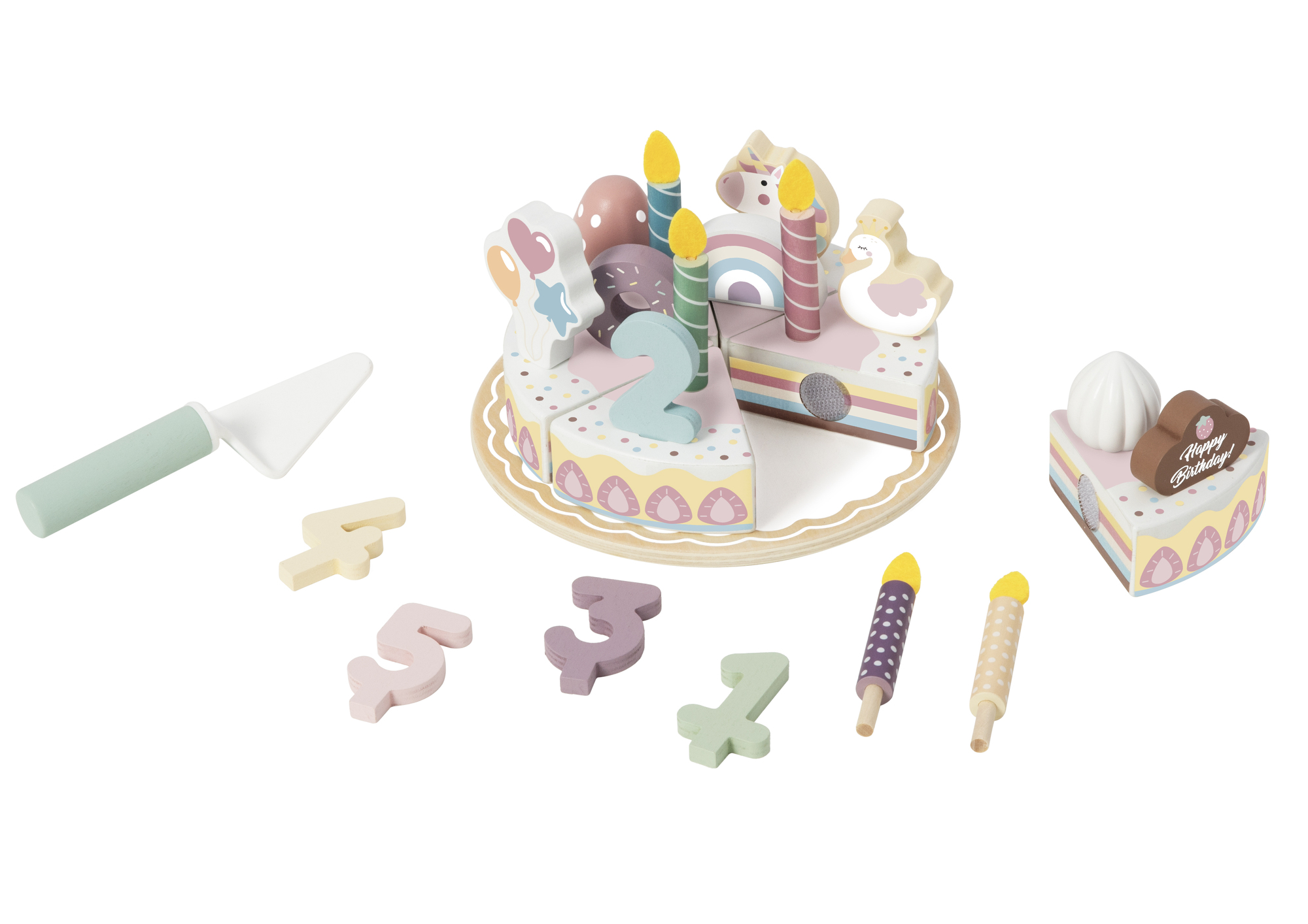 Narodeninová torta so sviečkamiDrevená krájacia torta pre deti - oslava, ktorá nikdy nekončíKaždý deň môže byť narodeninová párty! Táto drevená krájacia torta so sviečkami od Tooky Toy premení detské hranie na sladké dobrodružstvo plné fantázie. Vďaka suchému zipsu držia jednotlivé kúsky pevne pohromade a deti ich môžu opakovane „krájať“ a servírovať.Zábava, ktorá rozvíja aj učípodporuje komunikáciu, spoluprácu a sociálne zručnosti pri hre na dospelýchrozvíja jemnú motoriku, koordináciu a predstavivosťkvalitné drevené prevedenie z udržateľných zdrojovnetoxické farby a lak - bezpečné aj pre najmenšíchideálne ako darček pre deti, ktoré rady tvoria, servírujú a oslavujúskvelý doplnok do detskej kuchynky alebo herneČo nájdete v balení?6 kúskov drevenej torty spojených suchým zipsom5 sviečok a čísla 1-5 na napichovanietortová lyžica a servírovacie doplnky