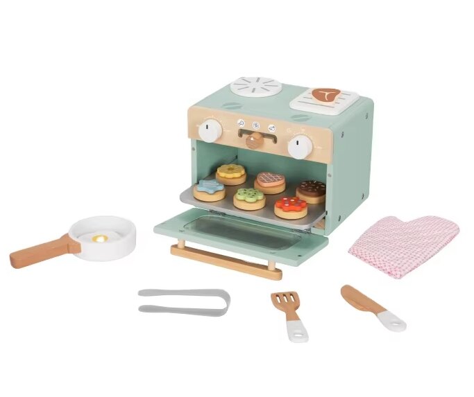 Mini rúra a sporákDetská mini rúra a sporák - pečenie a varenie s fantáziouTáto kreatívna drevená sada „mini rúra a sporák“ umožní deťom vžiť sa do role malého kuchára - môžete otvárať rúru, „piecť“ sušienky, pizzu či koláče a potom ich servírovať. Vyrobená z kvalitného dreva so starostlivo spracovanými detailmi a farebným náterom vhodným pre deti. Podporuje predstavivosť, učenie sa starostlivosti a zodpovednosti už od útleho veku.V čom vyniká tento kuchynský set?autentická drevená mini rúra a sporák v jednom vrátane hravých doplnkov na pečenie - ideálne na hru na varenie realistické ovládacie prvky pre väčšiu zábavu pri hranípodporuje rolové hry, sociálne interakcie a komunikáciupomáha rozvíjať jemnú motoriku a koordináciu ruka-okobezpečné a kvalitné materiály - navrhnuté pre deti