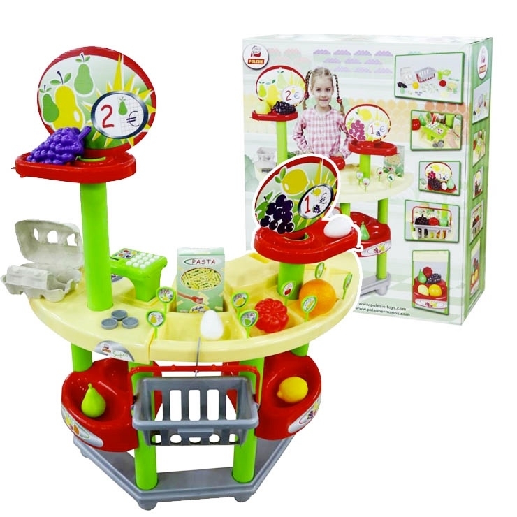 Pult Supermarket je balen v krabici 50 x 56 cm velké. Pult je 87 cm vysoký. Součástí balení jsou i všechny vyobrazené doplňky, ovoce, cenovky kasa, košík, mince apod. Pult byl vyroben ve spolupráci s firmou Palau Toys.