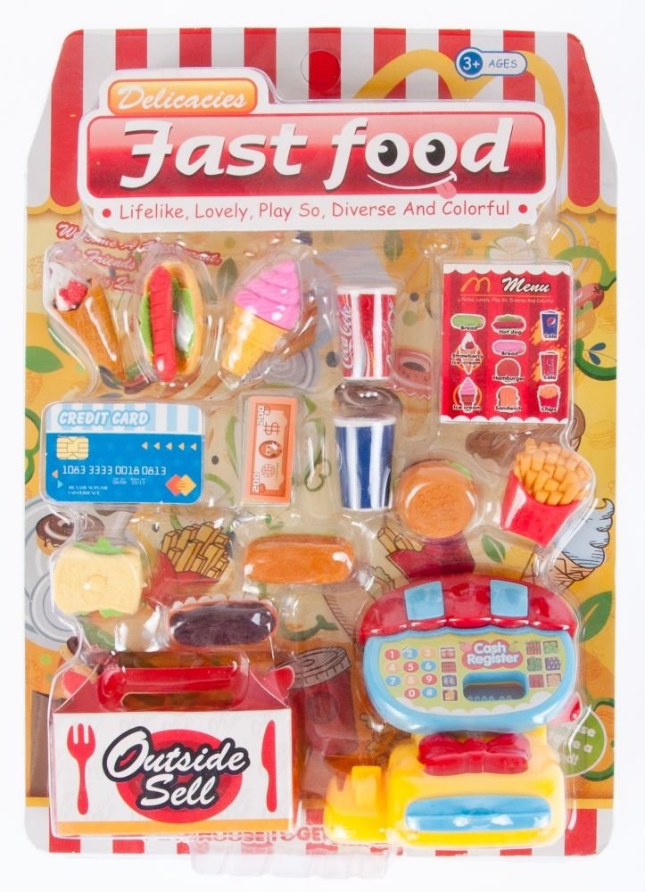 Mini obchůdek s fastfoodům - hra na prodávajícího a nakupujícího je ta nejoblíbenější. Zábavu zpestří i výrobky dostupné v obchodě. Díky této soupravě se dítě začne učit počítat a rozvíjet manuální dovednosti. Dodává se ve třech typech. Vše je vyrobeno z plastu. Určeno pro děti ve věku od 3 let.